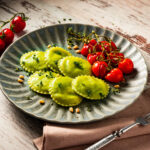 Spinat Ravioli mit geschmorten Tomaten
